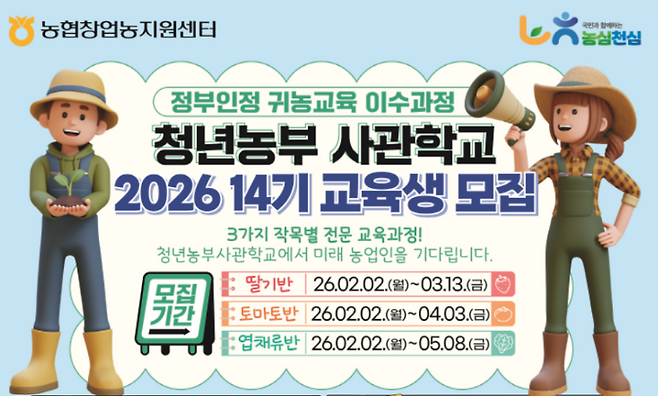 농협 제주본부는 중앙회가 지난 2일부터 2026년도 농협청년농부사관학교 교육생 모집에 들어갔다고 28일 밝혔습니다.