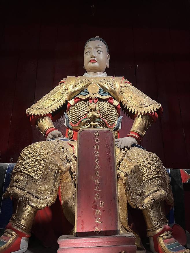 조금 과장하자면, 무후사의 곳곳을 꼼꼼하게 답사한다면 <삼국지>를 통독한 것과 같은 지혜와 교훈을 얻어갈 수 있다. 넓기도 하려니와, 건물과 인물상 앞에 소개된 중국어 안내판을 하나하나 번역해 읽어가다 보면 하루 해가 짧다. <삼국지>의 서사와 등장인물을 나름 자세히 기억하는 여행자라면 조금도 지루할 틈이 없다.