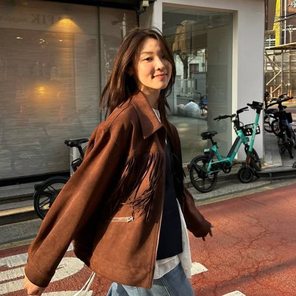 최미나수의 스타일링에서 또 하나 눈여겨볼 포인트는 아우터 선택입니다. 그녀의 룩을 살펴보면 롱 아우터보다는 골반 위로 떨어지는 숏한 기장의 아우터를 즐겨 입는 모습을 자주 볼 수 있는데요. 바시티 재킷, 스웨이드 레더 재킷 등 모두 상체는 콤팩트하게, 하체는 길어 보이게 연출하는 아이템들입니다. 다리를 강조하고 아우터는 뚝 떨어지는 핏으로, 시원시원한 비율을 더욱 돋보이게 만들죠.