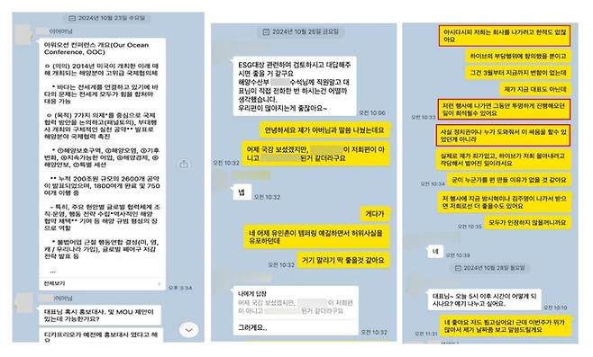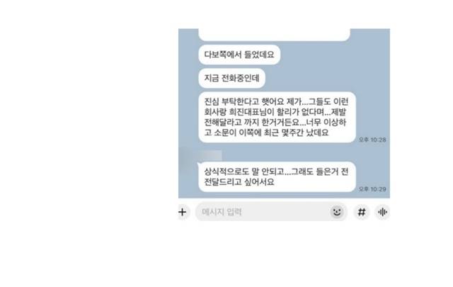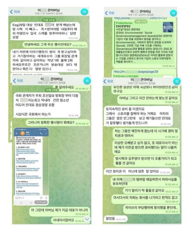 이에 대한 지적에 대해서 김 변호사는 “주주로서 어도어의 대표 이사로 복귀해야 하는 부분도 있었기에, 투자처나 제 3의 무언가를 위해서가 아닌, 소통 창구를 마련하기 위해서 만났던 부분”이라고 해명했다. 여기서도 ‘멤버의 큰 아버지’ 탓을 했다. “멤버의 큰 아버지가 그이야기해 줬기에 난났다”고 말한 김 변호사는 당시 어도어에 이 같은 만남을 보고하지 않는 것에 대해 “특별히 다보링크의 투자를 어도어에 끌어온다는 것이 아니기에, 보고를 해야 할 상황이 아니라고 보고 있다”고 해명했다.
