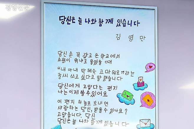 “3년 전 아내가 제 손을 꼭 잡고 늘푸름학교로 데리고 왔을 때가 떠오릅니다. 그날을 생각하면 지금도 가슴이 떨립니다. 이 편지를 하늘로 보내면 사랑하는 당신이 받겠죠?”