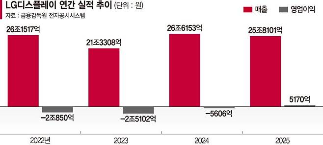 LG디스플레이는 지난해 연간 매출액 25조8101억원, 영업이익 5170억원을 기록했다고 28일 밝혔다. 영업이익 흑자 달성은 지난 2021년 이후 4년 만이다. 지난해 4·4분기만 놓고 봐도 수익성 개선세가 뚜렷하다. 매출액 7조2008억원, 영업이익 1685억원을 기록했다. 전년 동기보다 매출은 8% 감소했으나, 오히려 영업이익은 103% 증가했다.