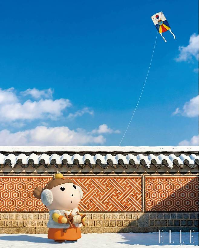 〈엘르〉와 첫 만남입니다. 생애 첫 화보의 결과물은 만족스럽나요 ‘우리’ 언니가 마루보고 예쁜 옷을 입었으니까 얌전히 있으라고 말했는데, 두껍게 쌓인 눈을 보니까 반갑고 신나서 마음껏 뛰고 싶었어! 하지만 언니가 멋지다고 해서 꾹 참았어. 화보 촬영이 끝나고 언니랑 같이 엄청 큰 눈사람을 만들었어. 언니한테 몰래 눈을 던져 혼났지만, 사진을 보니 그 순간이 다시 생각나서 좋아!