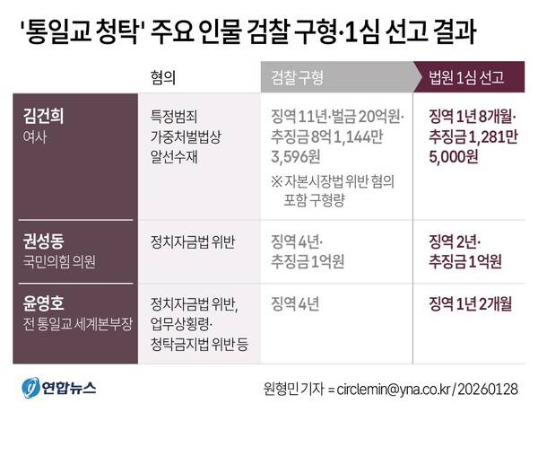 셋째 통일교 일부 금품 수수만 유죄로 본 이유