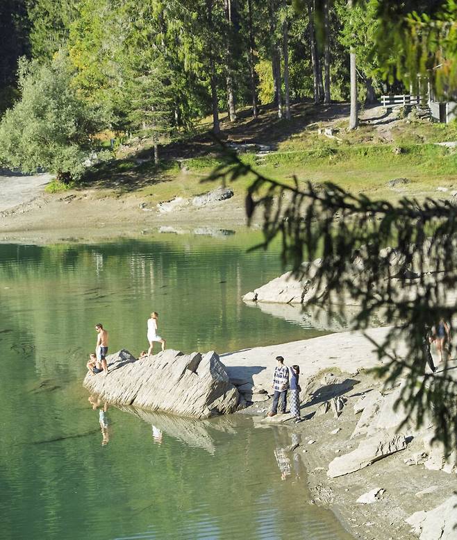 호수 한가운데에는 '이슬라(Isla)'라는 작은 섬 하나가 있는데, 스탠드업 패들보드나 페달 보트를 대여해 닿을 수 있다. 수영이나 물 위에서 하는 액티비티를 즐기기 어렵다면 쏟아지는 햇살을 맞으며 바위 위나 호숫가에서 일광욕을 즐기거나 근처로 하이킹을 떠나보자.