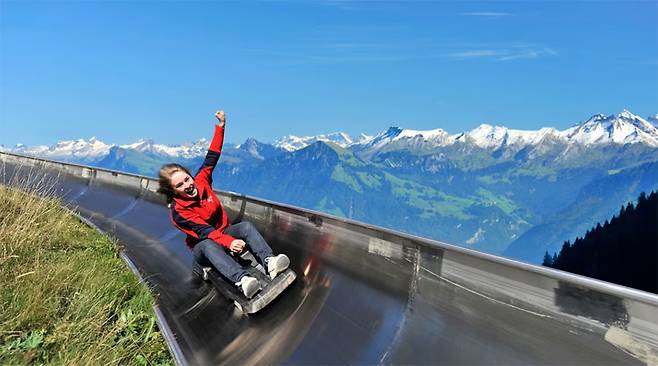스위스 정중앙 루체른 호숫가의 뒷동산 '필라투스(Pilatus)'는 산악 체험의 성지다. 산악 철도, 하이킹 트레일, 케이블카 등이 산 덕후들을 두 팔 벌려 환영한다. 여러 체험이 있지만 루체른(Luzern)에 여행 온 액티비티 애호가들을 단번에 사로잡는 액티비티는 '터보건(Toboggan)'이다.