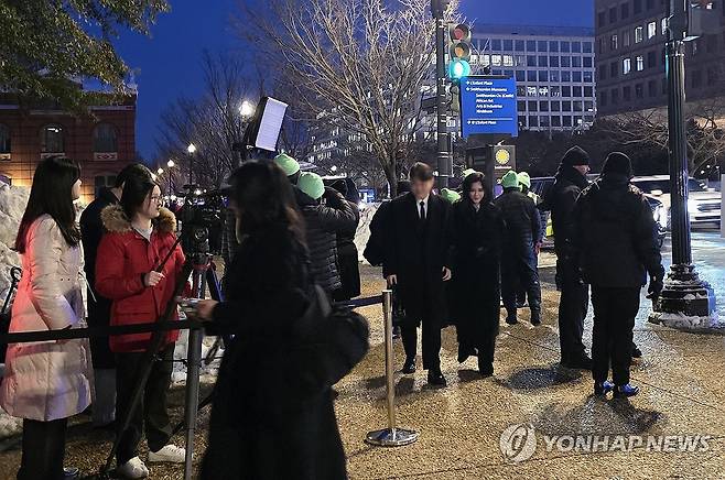 (워싱턴=연합뉴스) 이부진 호텔신라 사장과 아들이 28일(현지시간) 워싱턴DC 국립아시아예술박물관에서 열린 '이건희 컬렉션' 갈라 행사장에 들어서고 있다. 2026.1.29 [워싱턴 특파원 공동취재단. 재판매 및 DB 금지]