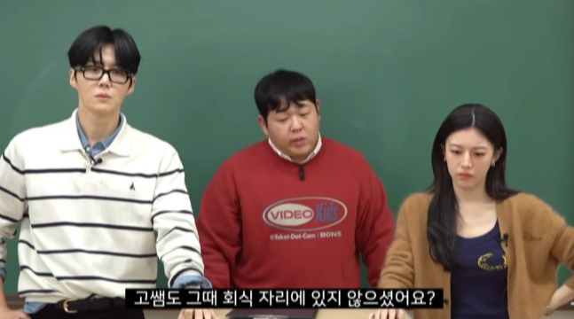 영상 속 김선호는 수업을 마친 뒤에도 교실에 남아 칠판을 천천히 지우며 문상훈 주변을 맴돌아 의미심장한 분위기를 만든다. 이어 고민 상담이 있다며 연애 이야기를 꺼내고, “고윤정과 대화가 통하지 않는다”, “을의 연애를 하고 있다”고 토로해 웃음을 자아낸다.
