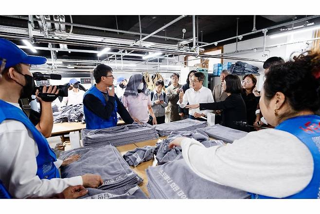 | ▲ 김동연 경기도지사가 2025년 11월 7일 달달버스를 타고 성남만남지역자활센터에 방문해 자활사업에 참여하고 있다 |