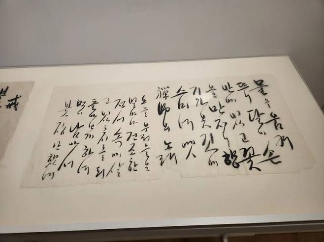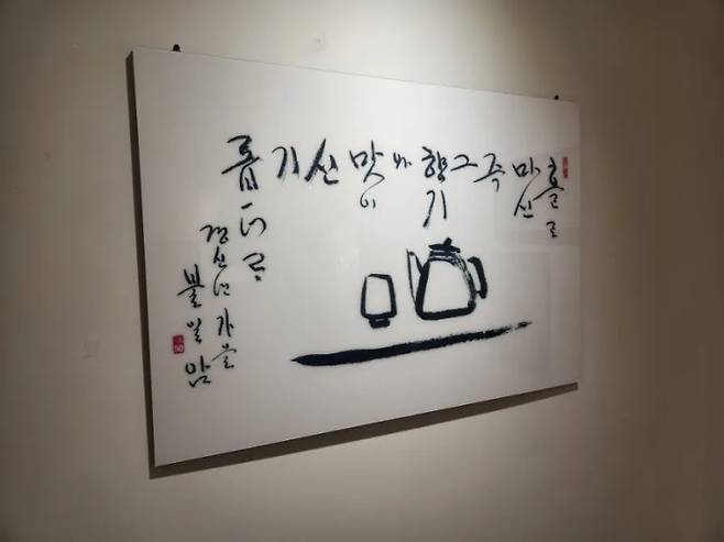 진영각에는 스님의 영정과 삶의 자취를 엿볼 수 있는 유품이 전시되어 있었다. 두 분이 언급한 낡고 해진 법복은, 그 어떤 화려한 설법보다 강렬하게 '청빈'의 의미를 웅변하고 있다. 두 분은 일주문 앞 갤러리 '스페이스 수퍼노말'에서 열리고 있는 '붓장난' 전시를 꼭 보라 권하며 자리를 떴다.