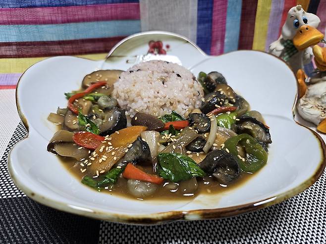 6. 접시에 따뜻한 밥을 담고 ‘⑤’의 해삼덮밥소스를 올려서 완성한다.