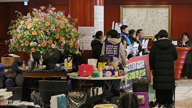 세종호텔 로비서 “정리해고 철회”[포토뉴스]