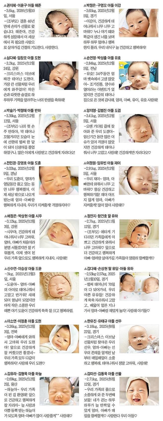 온 가족에게 기쁨을 안겨 준 아기의 탄생을 알려주세요. 홈페이지 주소 입력창에 아가야안녕.com이라고 입력하면 됩니다. 매일유업 육아 정보 사이트 매일아이(maeili.com)를 통해서도 접속할 수 있습니다. 추첨을 통해 출산 소식과 사진이 지면에 실린 가족에게는 ①케이크 구매권 ②엄마와 아이를 위한 매일두 포인트 3만원 ③출산 소식을 생일 날짜 본지 1면에 담은 PDF 파일 ④조선일보 1개월 무료 구독권을 드립니다. 당첨자 중 한 가족을 선정하여 해당 지면을 고급 프레임에 담아 제공하는 조선일보 리프린트도 제작해 드립니다. 홈페이지에서는 균형 영양식 메디웰 2만원 할인 혜택도 드리고 있습니다.