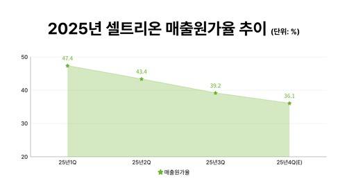 특히 셀트리온헬스케어와의 합병으로 발생한 고원가 재고 소진이 마무리되면서 매출원가율은 36.1%를 기록할 것으로 전망됐다.