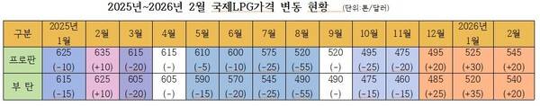 사우디아라비아 아람코사는 29일, 2월 국제LPG가격이 톤당 평균 20달러 인상해 프로판이 545달러, 부탄은 540달러로 각각 결정했다고 SK가스와 E1 등 LPG수입사에 통보했다.
