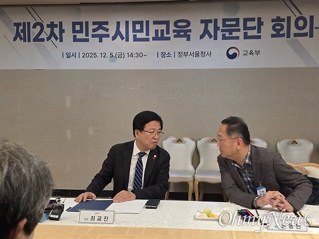 | ▲ 최교진 교육부장관이 지난해 12월 5일, 민주시민교육자문단 회의를 주재하고 있다. |