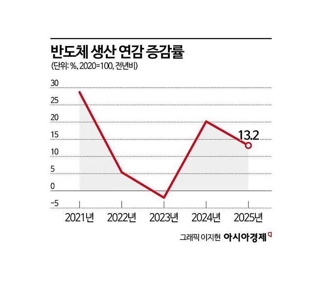반도체와 조선업 호황이 지난해 전산업 생산을 이끌었다. 지난해 광공업 생산은 전년 대비 1.6% 증가했고, 이 가운데 반도체 생산은 13.2% 늘었다. 인공지능(AI) 서버용 고사용 메모리와 모바일 애플리케이션프로세서(AP) 수요 확대가 생산 증가를 견인했다. 반도체 부품·장비, 관련 도소매, 설비투자까지 연쇄적으로 영향을 미치며 산업 전반에 선순환 효과를 냈다.