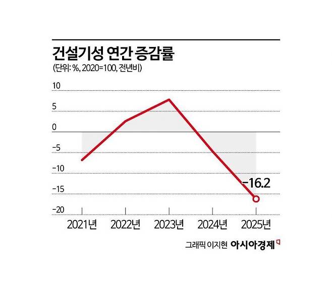 다만 건설업체의 국내 시공 실적을 금액으로 보여주는 건설기성은 건축과 토목이 모두 줄며 전년 대비 16.2% 감소했다. 이는 1998년 통계 작성을 시작한 이래 금융위기 당시인 2008년(-8.1%) 이후 최대 폭 감소다. 이 심의관은 "건설기성은 연간 기준으로 매우 부진했으며, 이 부분이 지난해 산업활동의 가장 큰 하방 압력으로 작용했다"고 설명했다.