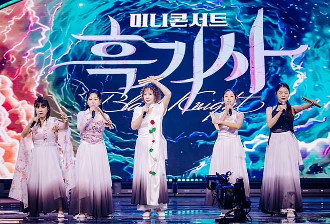 | ▲ 현역가왕3 본선2차전 팀라운드 '미니콘서트 흑기사'전에서 열창중인 '오방신녀'팀 오방신녀, 천기가왕, 누룽지캬라멜, 오! 미소자매, 4팀의 무대는 방송 녹화용으로만 공개하기에 아까울 정도로 훌륭한 무대였다. 결과는 4등이었지만 오방신녀팀의 무대는 국악에서 시작해서 트롯으로 넘어가는 다양성을 보여준 구성에서 남달랐다 |