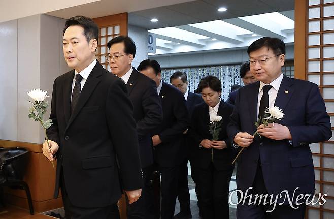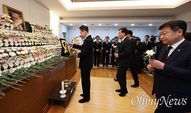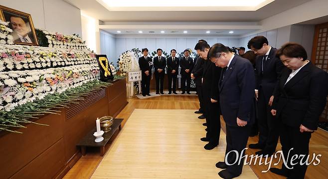 | ▲ 장동혁 대표, 이해찬 전 총리 빈소 조문 국민의힘 장동혁 대표와 송언석 원내대표 등 지도부가 30일 오전 서울 종로구 서울대학교병원 장례식장에 마련된 고 이해찬 전 국무총리의 빈소를 찾아 조문하고 있다. |
