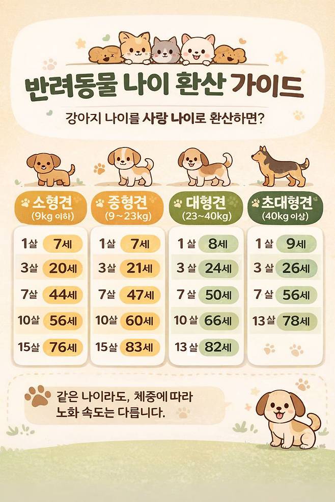 그래서 진료실에서는 반려동물의 나이를 사람 나이로 환산해 설명드리곤 합니다.