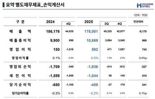 현대제철은 "철강 시황 악화 지속으로 매출은 약세를 보였으나 영업이익은 2024년을 저점으로 반등하고 있다"며 "고부가제품 판매 확대 및 저가 수입재에 대한 통상 대응 효과가 본격화되며 향후 수익성이 개선될 전망"이라고 했다.