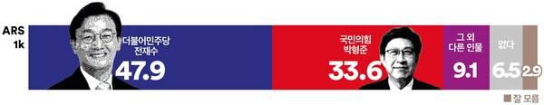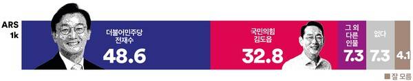 경남 , 민주 ,김경수, 국힘 박완수 김태호에 앞서