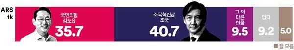 부산시민을 대상으로 조사한 정당 지지율은 민주당 46.7%였고, 국민의힘 40.3%, 조국혁신당 3.2%,진보당 2%,개혁신당 2.4% 등 순이었다.