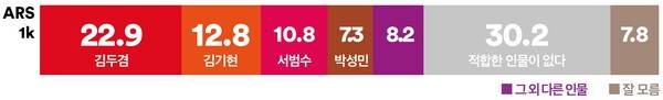 보수후보 적합도 조사에서는 김두겸 시장 22.9%, 김기현 의원 12.8%, 서범수 의원 10.8%, 박성민 의원 7.3% 순이었다.
