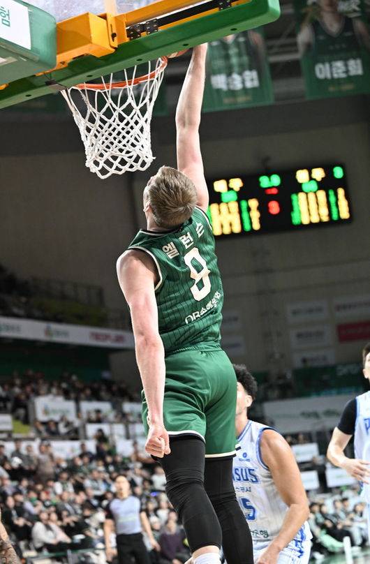 '커리어 하이'엘런슨 40점! DB, 가스공사와 극한 혈투 끝 공동 2위 도약