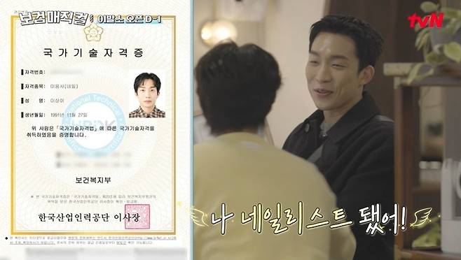 이어 등장한 이상이는 박보검의 이용사면허증을 보고는 "나도 걸어도 될까?"라며 "나 네일리스트 됐어"라고 뿌듯해했다.