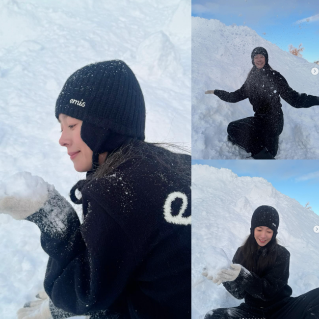 한지민은 최근 자신의 SNS를 통해 눈이 가득 쌓인 야외에서 보낸 시간을 사진으로 공유했다.