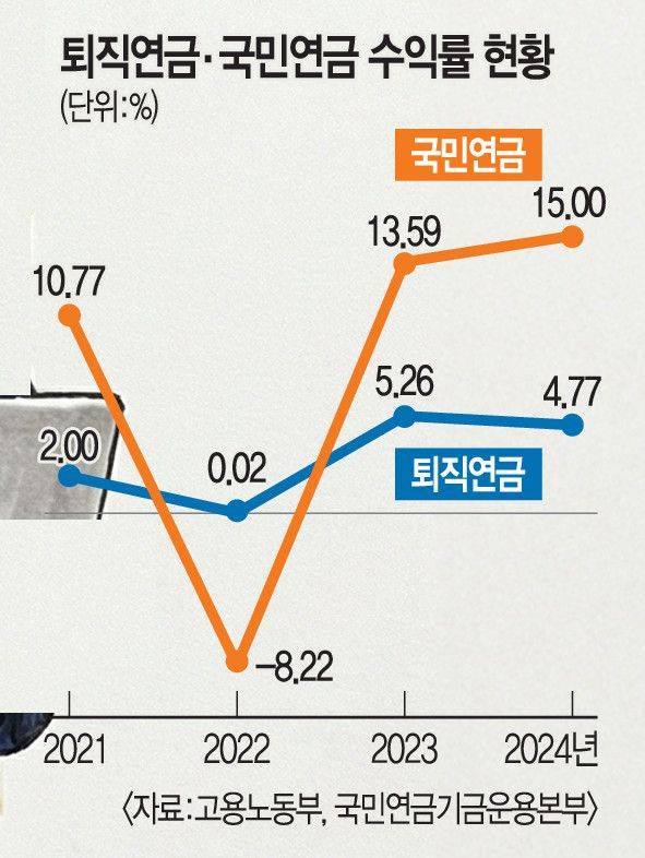 퇴직연금 기금화의 핵심 목적은 수익률 향상이다. 30일 국민연금기금운용본부에 따르면 기금을 설치한 1988년부터 2024년까지 국민연금의 연평균 수익률은 6.82%를 기록했다. 반면 고용노동부 집계를 보면 퇴직연금의 2024년 말 기준 연간 수익률은 4.77%에 그쳤다. 장기 운용을 전제로 2024년 말까지 최근 10년 평균 수익률을 따져보면 2.31%까지 낮아진다.