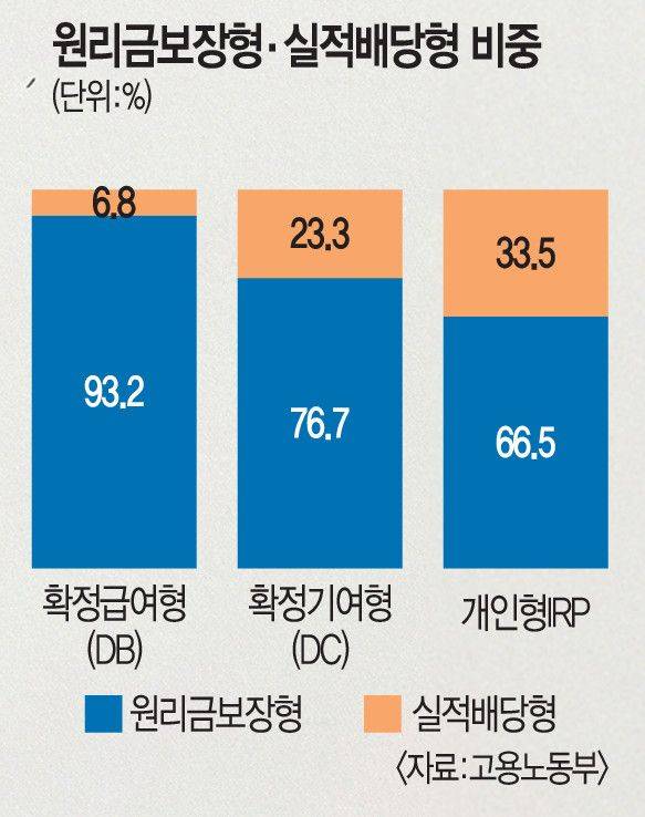퇴직연금 수익률이 낮은 가장 큰 이유는 적립금 대부분이 원리금 보장형 상품에 묶여 있기 때문이다. 가입자가 개별적으로 상품을 선택하고 운용해야 하는 현행 구조에서는 투자 정보가 부족해 실적배당형 상품보다 위험과 변동성이 낮은 원리금 보장형 상품을 선호하는 경향이 강하다. 반면 국민연금처럼 기금형으로 운용할 경우 전문성을 갖춘 대형 운용 조직이 전략적으로 투자에 나서서 정보 비대칭 문제를 완화할 수 있다. 또 규모의 경제를 통해 운용 효율성과 수익률을 함께 높일 수 있다.