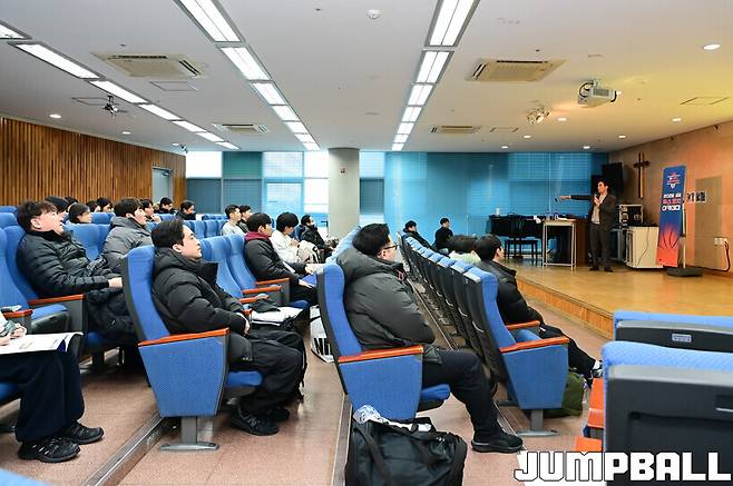 [점프볼=고덕/박상혁 기자] 30일 배재고 체육관에서 2026 KBL 유스 코치아카데미 1기 2일차 일정이 실시됐다. 2일차 일정 중 오전에는 구나단 전 감독이 실전 경기 운영법이라는 주제로 강연을 펼쳤고 KBL 박경진 심판과 오경석 심판은 실전 농구 규칙 이해라는 주제로 대화를 이끌었다.
