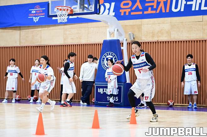 오후에는 퀀텀 바스켓볼 김현중 코치가 현장을 방문해 코치아카데미에 참가한 교사들에게 스킬 트레이닝 훈련을 지도했다.