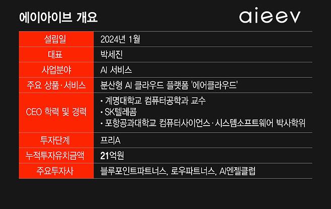차우진 블루포인트파트너스 책임심사역은 분산형 AI 클라우드 스타트업 에이아이브(AIEEV)에 투자한 배경을 이렇게 설명했다. 에이아이브는 최근 블루포인트파트너스, 로우파트너스, AI엔젤클럽으로부터 6억원 규모의 프리시리즈A 투자를 유치했다. 누적 투자유치액은 21억원이다.