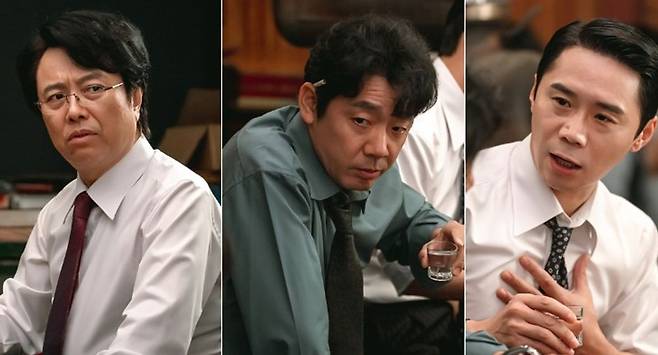 공개된 스틸에는 ‘예삐’ 후보로 지목된 소경동(서현철 분) 부장, 방진목(김도현 분) 과장, 차중일(임철수 분) 부장의 회동이 담겼다. 술잔을 기울이는 한민증권 ‘소.방.차’ 3인방 옆에, 홍금보를 비롯해 알벗 오(조한결 분) 본부장과 이용기(장도하 분) 과장까지 위기관리본부 팀원들도 동석해 수상한 기류를 형성하고 있다.