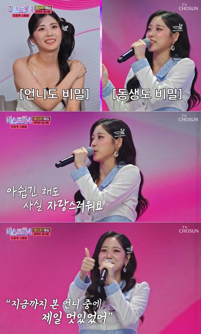"언니가 무대에서 많이 떨더라고요. 선곡 미스도 있었고, 그래서 아쉬움이 남긴 했지만 그래도 언니가 정말 멋있었어요. 평소 실력만큼 발휘가 안 된 부분도 있었는데, 그건 사실 연습을 더 많이 했으면 됐을 부분이기도 해서요. (웃음) 아무래도 경연 무대 경험이 많지 않다 보니 더 긴장했던 것 같아요. 그러면서도 한편으로는 '언니가 합격해서 우리 둘이 데스매치에서 붙으면 어떨까?'라는 상상을 하기도 했어요. 저희 자매에게는 특별하고 의미 있는 시간이 된 것 같아요."