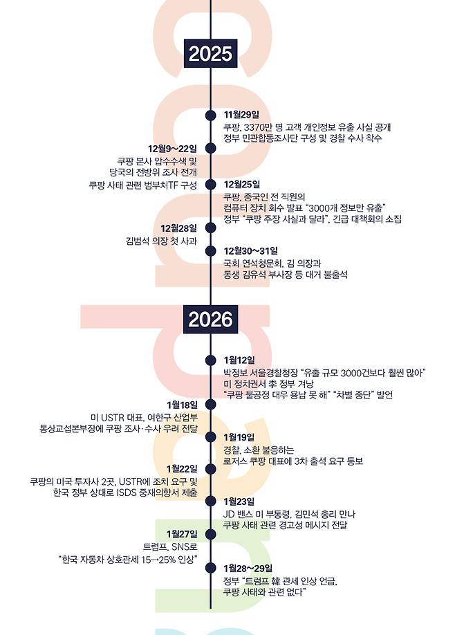 트럼프 행정부와 미 의회의 동시다발적인 한국 압박 배경에 쿠팡 사태가 하나의 '지렛대'로 작용했을 가능성을 간과해선 안 된다는 지적이 나온다. 쿠팡 한국법인의 지분 100%를 보유한 미국 모회사인 쿠팡Inc는 지난 5년간 미국 정·관계를 상대로 활발한 로비 활동을 벌여왔다. 최근 쿠팡을 공개적으로 엄호하거나 "한국 정부가 미국 기술기업과 경영진을 마녀사냥 한다"고 주장한 미 상·하원 의원들의 움직임도 이와 무관치 않다.