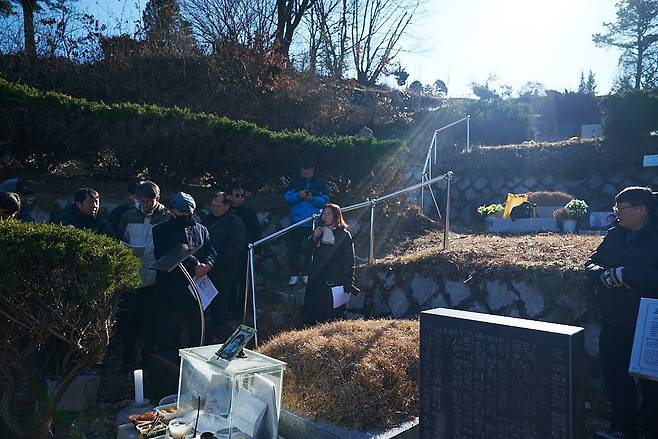 | ▲ 한희철추모제에서 발언하는 이형숙 이날 추모제는 2024년 12월 8일 마석민주공원에서 열렸다. |