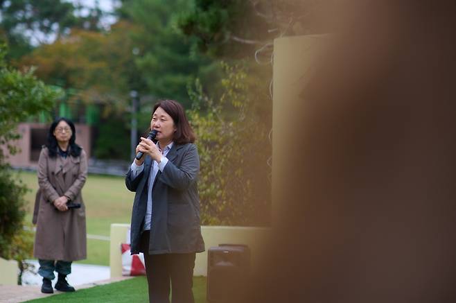 | ▲ 성균관대 민족민주열사 추모제에서 발언하는 이형숙 2025년 10월 19일에 열린 추모식이다. |