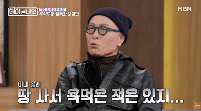 그러면서 허영만은 "있는 거 다 털어 넣었으면 진즉 집에서 쫓겨났을 거다"라면서 "돈 좀 생기면 땅을 산다"고 밝혔다. 그때 허영만은 "세컨하우스 짓는다고 아내 몰래 땅 사서 욕먹는 적은 있다"면서 "근데 그걸 사기당했다"라고 안타까운 사연을 털어놔 눈길을 끌었다.