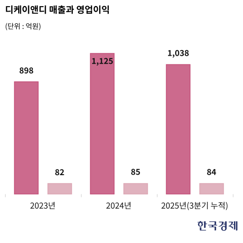 신사업 구상 배경엔 호실적이 있었다. 지난해 3분기 누적 매출 1038억원, 영업이익 84억원으로 2024년 실적(매출 1125억원, 영업이익 85억원)을 넘어설 게 확실시 되기 때문이다. 인조가죽은 불황일 때 더 잘나간다. 경기가 호황이면 사람들이 비싸더라도 천연가죽을 찾고, 불황이면 지갑이 얇아지고 알뜰하게 소비를 하기 위해 인조가죽을 찾기 때문이다. 디케이앤디는 올해는 매출 30% 증가, 영업이익률 7.5% 이상을 목표로 세웠다.