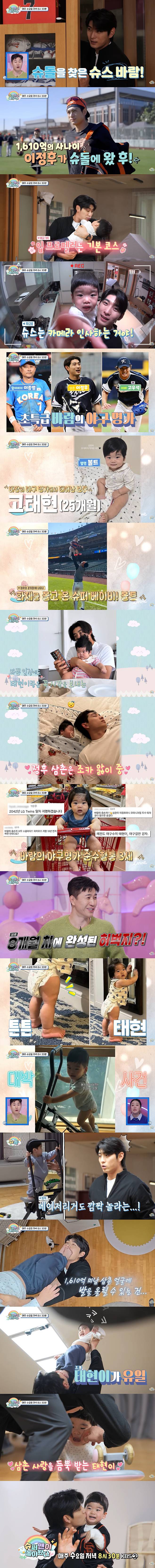 바람의 야구 명가에서 태어난 보물 태현 군은 현재 25개월로, 이정후의 경기장에 나타나 화제를 몰고 온 슈퍼 베이비라고. 이정후는 바쁜 일정 속에서도 태현 군과 꼭 시간을 보내는 소문난 조카 바보였다.