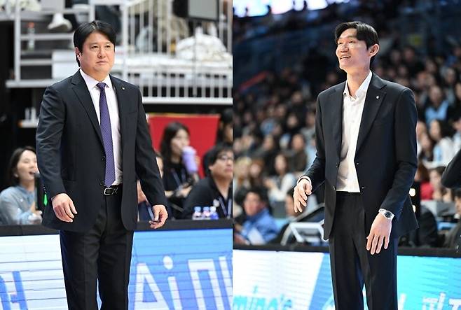 사진 설명 = 왼쪽부터 문경은 KT 감독-김주성 DB 감독