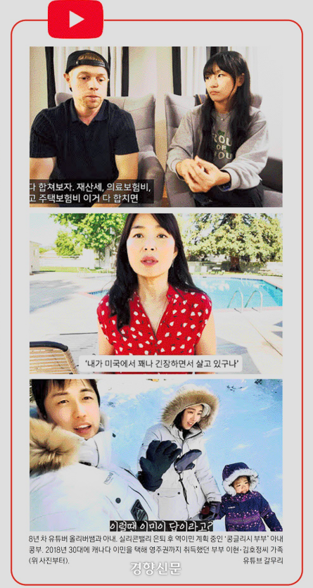 해외 생활을 접고 한국으로 돌아오는 선택은, 때로 실패처럼 비치곤 한다. 하지만 역이민 또한 용기와 도전이 필요하다. 2018년 30대에 캐나다 이민을 택해 영주권까지 취득했던 부부 이현·김호정씨는 유튜브 채널 ‘현부부’를 운영하면서 이민과 역이민의 과정을 모두 공유했다. 외국계 대기업, 대한항공 승무원이라는 직업을 포기하고 캐나다에서 영주권까지 땄지만, 이민자의 삶은 쉽지 않았고 생활비는 예상보다 훨씬 높았다. 코로나 시기 봉쇄까지 겹치자 일상은 더 위축됐다. 김씨는 “아이랑 보내는 시간을 늘리려고 이민을 왔는데, 정작 우리는 늘 돈 걱정하고 비자 걱정하고 있었다”고 했다. 결국 부부는 한국행을 택했고, 귀국 후에는 취업 대신 창업을 선택했다.