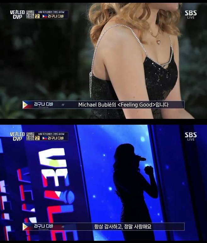 이날 필리핀 참가자 중 유일하게 파이널에 진출한 '라구나 디바'는 마이클 부블레의 'Feeling Good'을 선곡해 무대에 올랐다. 그는 선곡 이유에 대해 "저의 인생관과 현재의 삶의 방식을 상징하는 곡"이라며 "가창력뿐만 아니라 아티스트로서의 성장을 보여주고 싶다"고 당찬 포부를 밝혔다.