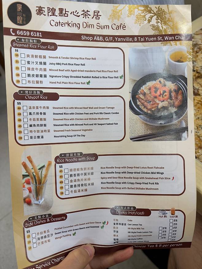 홍콩에서 가장 유명한 음식을 하나 꼽아보라면 '딤섬'이다. 길 가다가 둘러보면 쉽게 찾을 수 있는 게 딤섬집이다. 국내에서 분식집을 쉽게 찾을 수 있듯 말이다. 딤섬은 '점심(點心)'의 광둥식 발음이다. 광둥에서는 간단하게 먹는 음식을 뜻하는데, 만두피 안에 고기나 야채를 속으로 넣어 만든 음식이다. 다행히 많은 딤섬 전문점에 채식 딤섬이 있었다. 광둥어에 익숙하지 않지만, 채식 메뉴 옆에는 그림이 표기되어 있다.