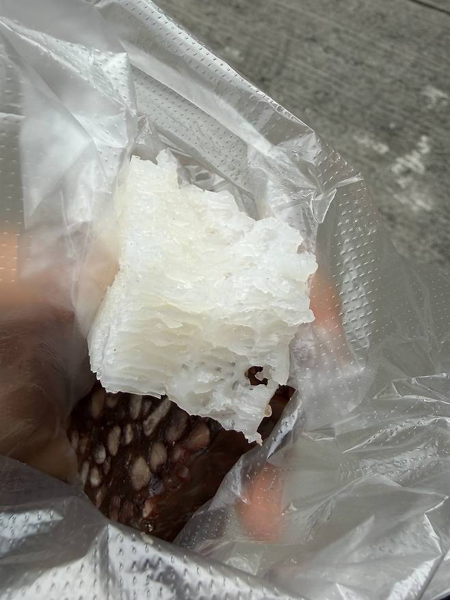 잠시 후 홍콩인은 나를 붙잡더니 "탑원, 탑투, 탑쓰리!"라고 말하며 쇼케이스를 손가락으로 가리켰다. 완벽한 의사소통이었다. 그는 탑원을 몽땅 받아서 어딘가로 갔고 나는 고맙다고 말했다. 우리는 '탑원'과 '탑쓰리'를 하나씩 먹어보기로 했다. 탑원은 홍두고, 탑쓰리는 백당고다. 홍두고는 팥양갱 같은 음식이었지만 팥의 식감이 살아있고 국내 팥양갱보다는 덜 달다. 백당고는 식감 자체는 우리나라 술빵과 매우 유사한데 조금 더 촉촉하고 말캉한 식감이다.